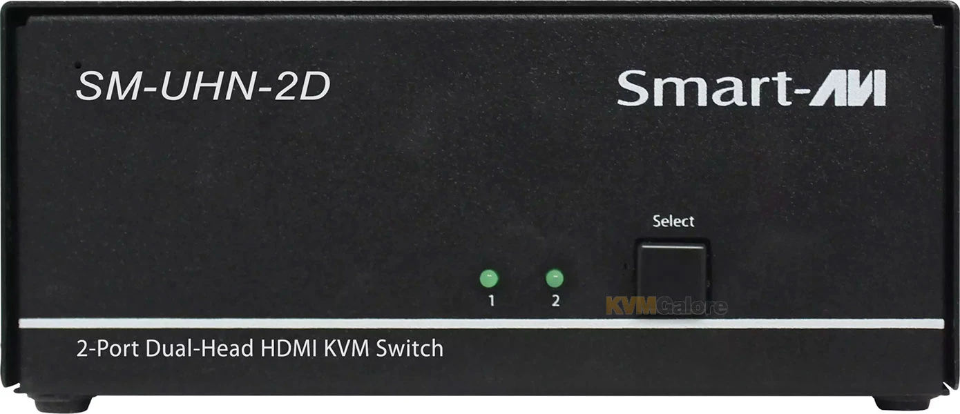 SM-UHN-2D KVM switch allows the control of two computers via a single console set of USB keyboard/mouse/hub, speaker and 2x HDMI displays. SM-UHN-2D KVM switch has a built-in USB 2.0 compliant hub that allows sharing of the USB peripherals, along with 3.5mm stereo ports for speakers.