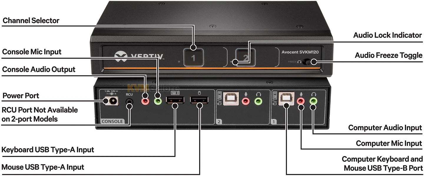 Vertiv™ Avocent® SVKM120 provides industry-leading productivity and outstanding value, used to streamline the desktop as a front end to one or more high performance solutions.