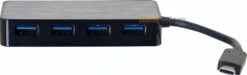The USB-C to 4-Port USB-A hub expands USB capabilities by providing four USB-A ports for connecting peripherals to a single USB-C port. This hub is ideal for supporting keyboards, mice and other low-powered USB devices.