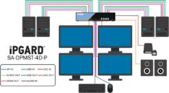 SA-DPMST-4D-P is a secure DisplayPort 1.2a compliant device. SA-DPMST-4D-P can control 2 computers with dual DisplayPort connections each, while providing the ability to view their video in an extended-desktop on four HDMI monitors.