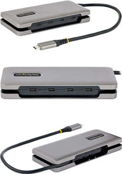 This 4-port USB-C hub with USB Power Delivery (Power Delivery) pass-through expands the connectivity of a USB-C laptop.