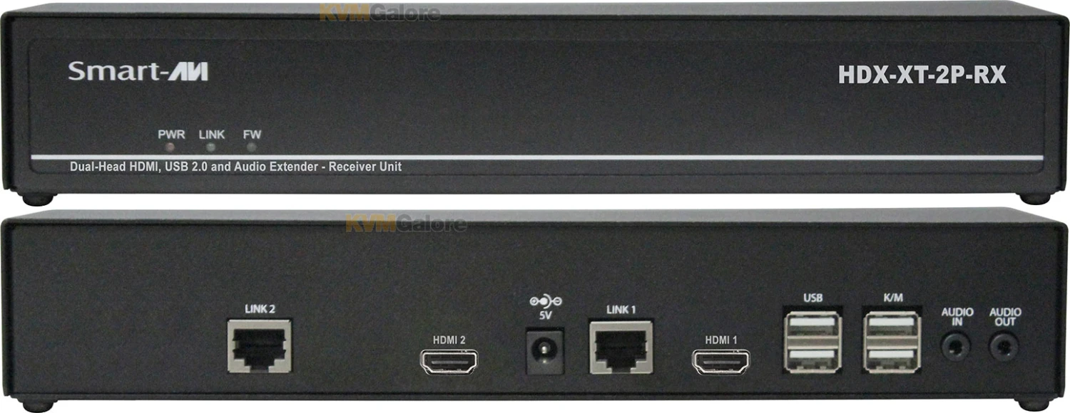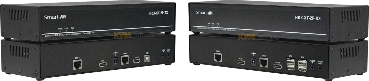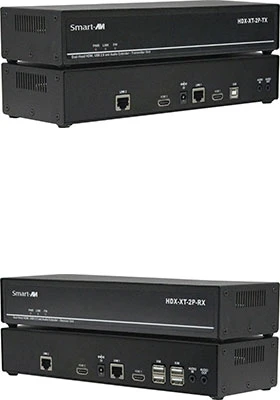 HDX-XT-2P is a keyboard/2x video/mouse extender which can extend two HDMI signal over 330 feet (100 m) to two compatible displays at resolution up to 4K/30Hz, with bi-directional audio and fully-transparent USB 2.0.