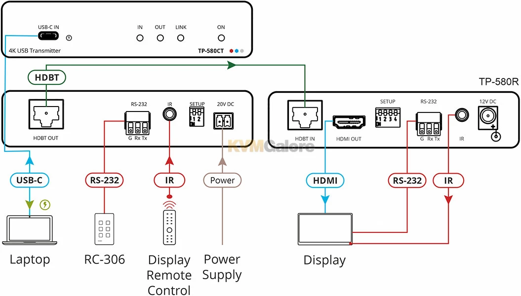 TP-580CT converts the USB-C input video signal, along with all other input signals, into the transmitted HDBaseT signal.