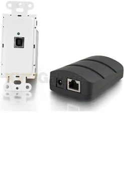 Integrated UTP power inserter technology provides 500 milliamps of power when the power adapter is connected through the transmitter end or receiver end, depending on the desired configuration. This provides enough power to operate most new USB devices, such as new interactive whiteboards, and allows for flexibility in equipment placement.