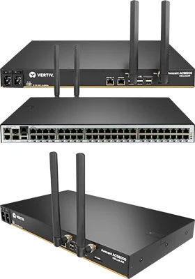 Vertiv™ Avocent® ACS 8000 serial console server/switch delivers secure in-band and out-of-band visibility and control to downstream equipment in enterprise data centers, as well as cloud and colocation facilities. Now with cellular capabilities, the system provides flexibility to access devices when wired networks are down (failover) or unavailable at the location.