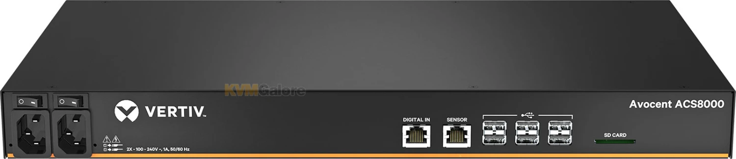 Vertiv Avocent ACS 8000 serial console offers upgraded and advanced features that deliver scalable and high performance solutions for IT administrators. The console server features a dual ARM core processor platform with dual gigabit-Ethernet ports. In addition, there is an environmental sensor port, to connect a variety of sensors for monitoring and logging on the appliance.