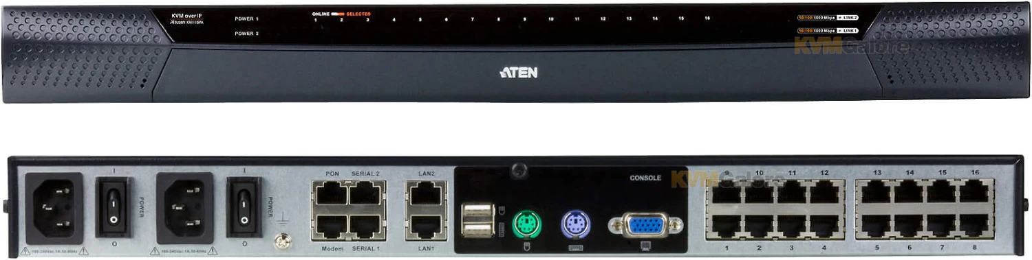 16-port KVM over IP switch with 1 local and 1 remote user accessÂ
