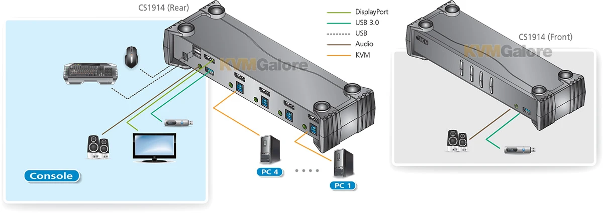 Featuring an unbeatable combination of ultra high 4K resolutions, a next generation USB 3.1 Gen 1 hub and enhanced, audio sharing and user-friendly operations, CS1914 provides the latest innovations in desktop KVM switching technology. With its rich feature set, the CS1914 is designed to surpass all requirements in graphic design, animation, and video-editing applications, such as CAD/CAM (computer aided design/manufacturing).