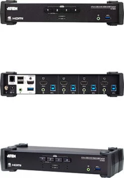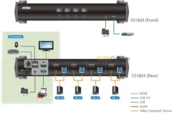 CS1824 4-port USB 3.0 4K HDMI KVMP switch combines KVM switch with HDMI video interface and a 2-port USB 3.1 Gen 1 hub. ATEN CS1824 KVMP switch offers effortless management of four HDMI interface computers from a single USB keyboard, mouse and HDMI monitor. Supporting the most superior video quality up to 4K DCI (4096×2160 @ 60Hz), CS1824 optimizes user experience of multitasking.