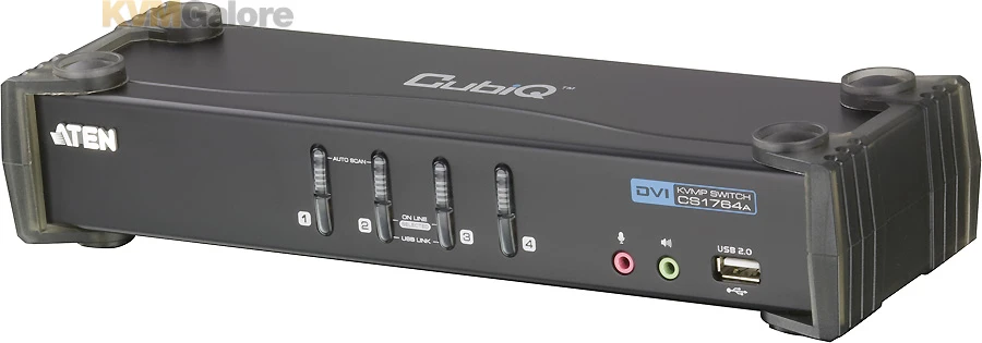 CubiQ™ CS1764A USB 2.0 DVI KVMP switch charts a revolutionary new direction in KVM (Keyboard, Video, Mouse) switch functionality by combining a 4 port KVM switch with a 2 port USB 2.0 hub at the same time as it provides an interface for a monitor (DVI).