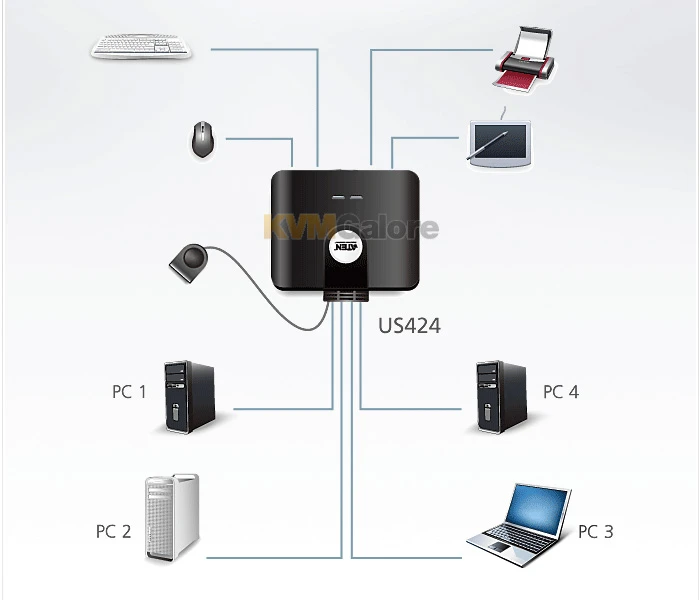 US424 is the ideal way to share USB peripherals in a multimedia office environment.