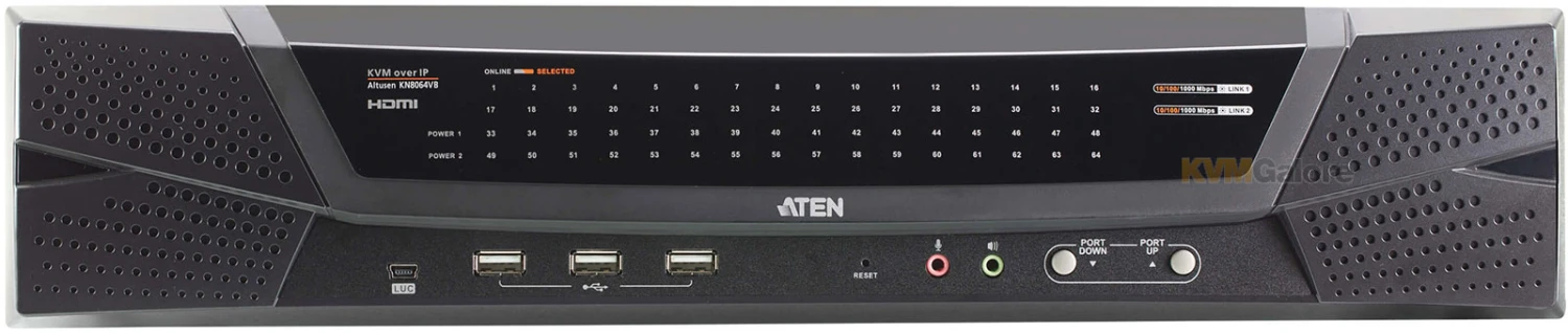 KN8064VB switch is an IP-based KVM control unit that allow both local and remote operators to monitor and access multiple servers from a single console. This KVM over IP switch can control up to 64 servers, and by cascading compatible KVM switch, as many as 512 servers can be controlled on a complete two-stage installation.