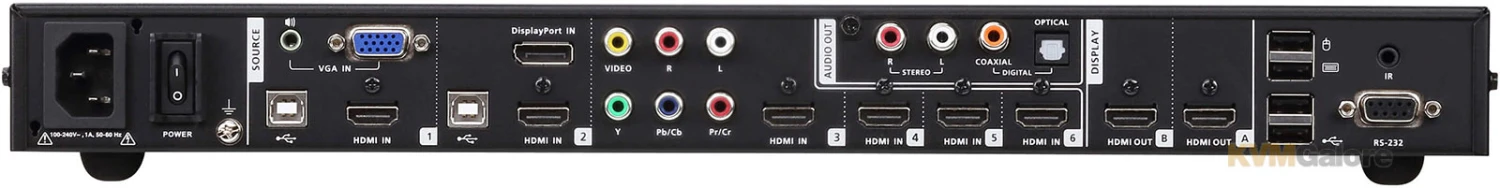 • USB ports enable keyboard/mouse or touch panel control over the connected computers