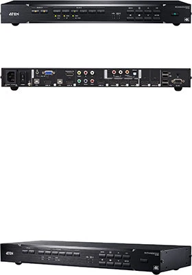 ATEN VP1920 is a 3-in-1 presentation switch that integrates a video matrix switch, an audio processor, and analog-to-digital converter functions. With nine multi-format inputs to two HDMI 4K outputs, it is designed to boost the efficiency and impact of professional presentations.