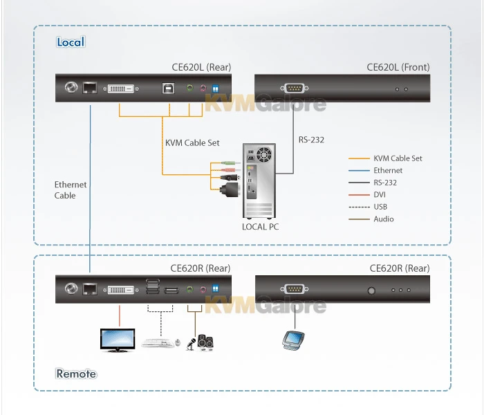 1x CE620R USB DVI HDBaseT 2.0 KVM Extender (Remote Unit)