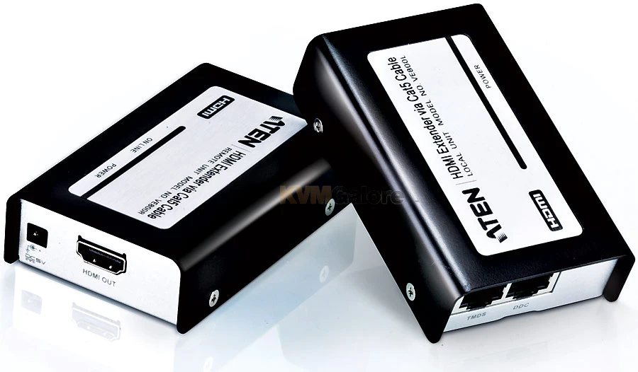 VE800A HDMI extender extends an HDMI display up to 196 feet away from your HDMI source using one CAT-5e cable.