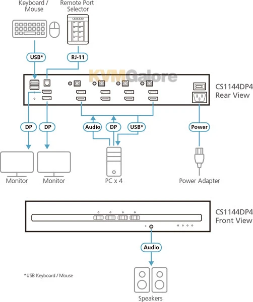 1x CS1144DP4 4-port USB DisplayPort secure KVM switch