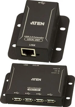 UCE3250 4-port USB 2.0 CAT-5 extender is a two-unit device that serves as a USB hub and a USB extender. UCE3250 unit can connect as many as 4 USB peripherals from up to 164 feet away from your computer over a CAT-5/5e/6 cable.