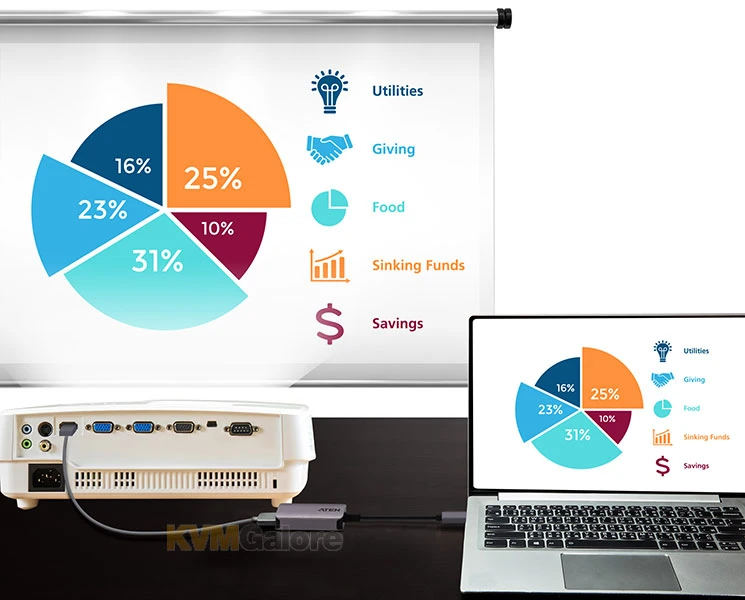 • Transfers high-quality video from a USB-C enabled laptop or smartphone to a HDMI 4K @ 60Hz (4096×2160 @ 60Hz) display, TV or projector*
