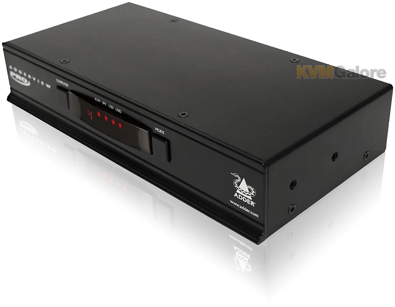 AdderView PRO is a professional grade KVMA switch delivering ultimate flexibility for users who wish to share a high resolution screen and modern USB peripherals between a multiplicity of computers.