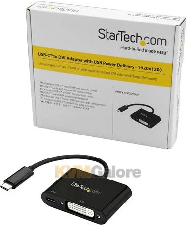 • Charge your laptop and output DVI video using the same USB-C port, with USB power delivery