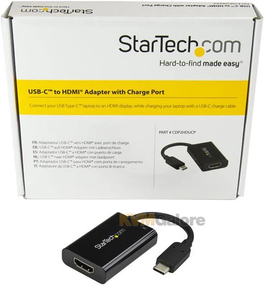 This USB-C to 4K HDMI® adapter connects an HDMI display to your laptop or MacBook with USB Type-C. The USB-C to HDMI adapter features USB power delivery, so you can power your laptop while outputting video, using the same USB-C port.