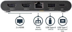 Transform your Windows laptop into a dual monitor workstation using this USB-C docking station. It offers support for dual HDMI monitors, 2 USB Type-A peripherals, a LAN port for GbE network access and an extended 1-meter host cable.