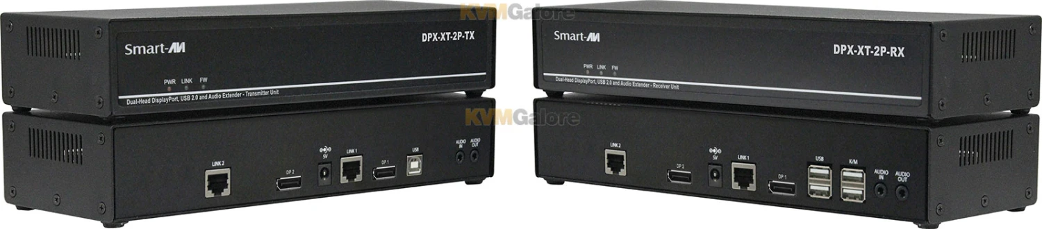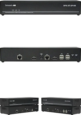 DPX-XT-2P is an extender supporting DisplayPort 4K/30Hz, with bi-directional audio and fully-transparent USB 2.0 at up to 328 feet over a single CAT-5e/6/6a cable.