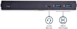 Transform your laptop into a workstation that supports all of your peripherals. This docking station features five USB 3.0 (USB 3.1 Gen1) ports. The two front-facing USB ports are USB fast-charge ports (USB Battery Charging Specification 1.2). These accessible ports charge your mobile devices faster than standard USB ports, with or without your laptop connected to the dock. The dock also has a GbE port and headset jack, so you’ll have all the connections you need.