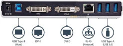 This dual-monitor USB 3.0 docking station turns your laptop into a dual-monitor workstation with flexible setup options.