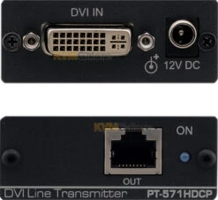 PT-571HDCP is a DGKat™ twisted-pair transmitter for DVI signals. PT-571HDCP converts the DVI to twisted pair signal and sends it to PT-572HDCP+ receiver (purchased separately) which converts the twisted pair signal back to a DVI signal.