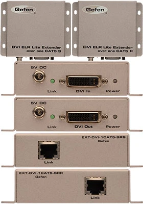 DVI ELR Lite Extender over one CAT-5 allows the extension of any DVI source to a monitor or touch screen display, up to 230 feet (70 meters) using a CAT-6a cable, and up to 200 feet (60 meters) over one CAT-5e.