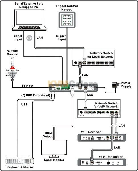 Control is available via WebGUI (remote or local), RS-232, Telnet, UDP, IR Remote, and triggers.
