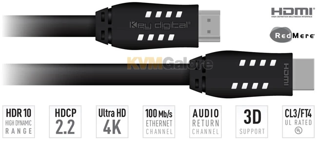 CL3/FT4 UL rated, Ultra-HD/4K, HDR 10, HDCP 2.2, 3D, Ethernet, ARC with RedMere technologyÂ