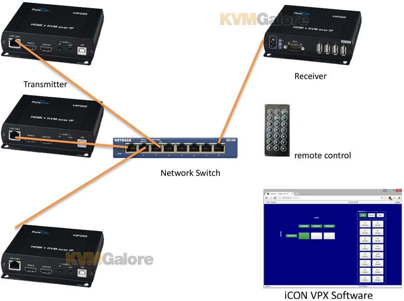 VIP-200 IP video distribution and matrix switching capabilities via IP network enables the easy setup and configuration of HD video, audio, and USB (KVM) signals over IP networks using PureLink’s proprietary PureStreamX codec. Transmitter (encoder) and receiver (decoder) modules can extend signals up to 590 feet (180m) point-to-point or to/from a network switch. Together with the revolutionary VPX IP video management software (purchased separately), VIP-200 offers multi-format hardware options and an intuitive web based UI application to deliver a powerful and easy to install IP video distribution system.