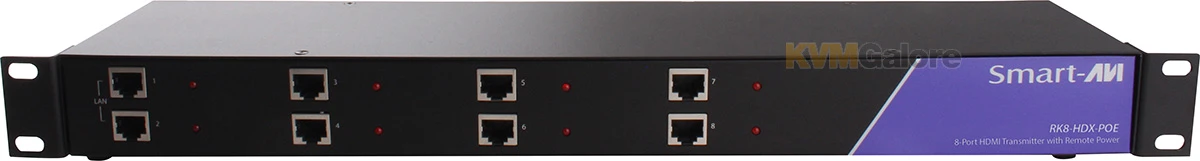 RK8-HDX-POE-S: 8-port rack-mount HDMI, IR and power extender over CAT-5e/6 (transmitter)