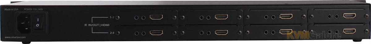 Up to eight displays can be extended easily from a rack without the mess or expense of multiple extenders. Rather than buy multiple extenders for rack components, and having to find power strips or numerous power outlets for the adapters, Smart-AVI rack series of extenders allows for up to eight inputs and eight outputs with only one power supply.