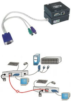 XTENDEX® KVM extender provides local and remote KVM (PS/2 keyboard, PS/2 mouse and VGA monitor) access to a PC or a KVM switch up to 600 feet using CAT5/5e/6 UTP cable.