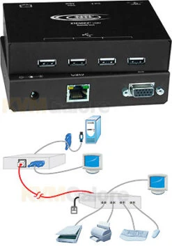 XTENDEX® Transparent VGA USB Extender extends four USB devices and a VGA monitor up to 200 feet.