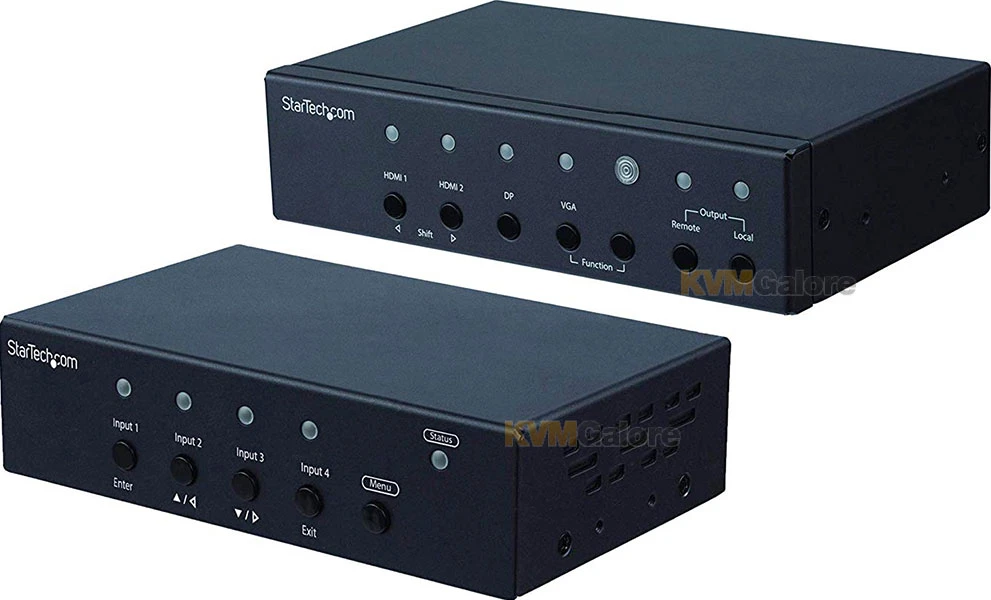 • Save hassle and expense with a switch and extender in one device, that accommodates VGA, DisplayPort and HDMI inputs