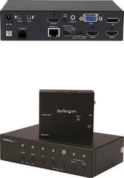 • Save the hassle and expense of using multiple hardware devices, with a switch and extender in one device that accommodates VGA, DisplayPort and HDMI inputs