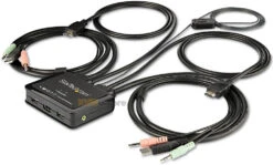The 2-port HDMI KVM switch supports video resolution up to 4K at 60Hz and can drive one large HDMI display with ease, maximizing viewing space. With support for separate 3.5 mm stereo audio, the KVM switch delivers full audio compatibility across connected computers.