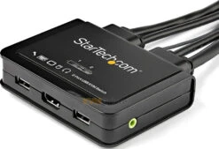 The 2-port HDMI KVM switch supports video resolution up to 4K at 60Hz and can drive one large HDMI display with ease, maximizing viewing space. With support for separate 3.5 mm stereo audio, the KVM switch delivers full audio compatibility across connected computers.