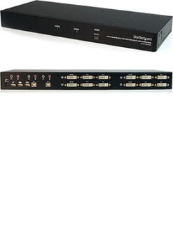 SV231QDVIUA 2-port quad-monitor dual-link DVI USB KVM switch allows 2 PCs, each with 4 DVI video outputs, to share monitors, 1 microphone and set of speakers, 1 keyboard and 1 mouse as well as an additional USB 2.0 peripheral such as an external hard drive, thumb drive, printer, or webcam.