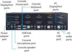 The KVM switch features auxiliary 3.5 mm audio ports that let you share independent analog audio, from each of your connected computers, with your desktop speaker set. With independent audio support, along with dual 4K DisplayPort video, you get full multimedia control between different computers which makes this the perfect KVM switch for creative professional applications such as video and sound design or editing.