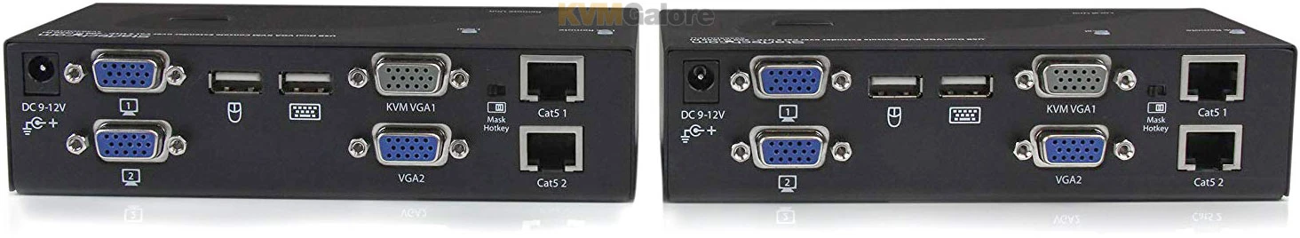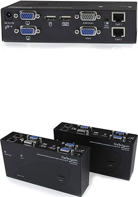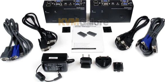 The dual-VGA CAT-5 KVM extender supports easy to use hot-key and push button commands which allow you to switch between local and remote connected systems, while console connections at both ends of your setup provide easy access to all connected systems from either location. The hot-key commands also provide video adjustment controls for optimizing picture quality over varying distances.