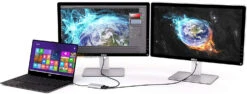 Functioning as an external 2-port graphics adapter with audio support, this is a compact and convenient alternative to a laptop dock when you don’t need full docking capability.