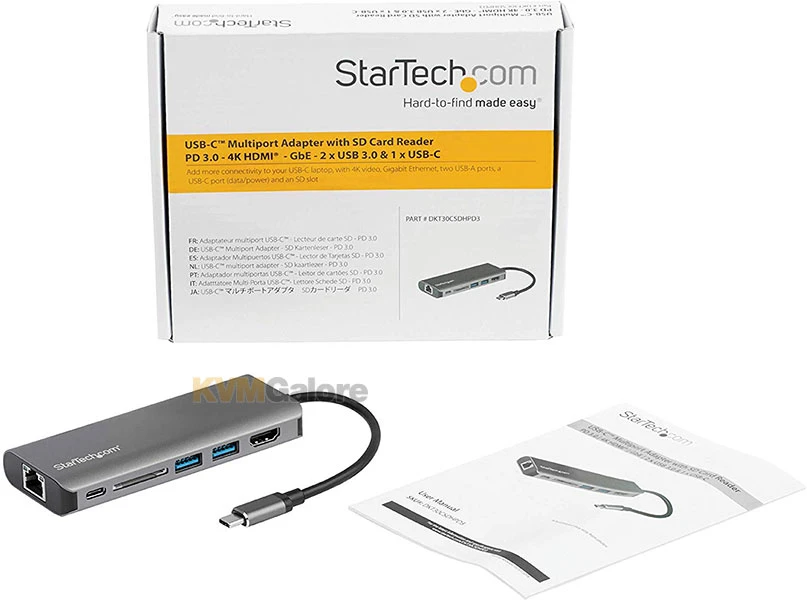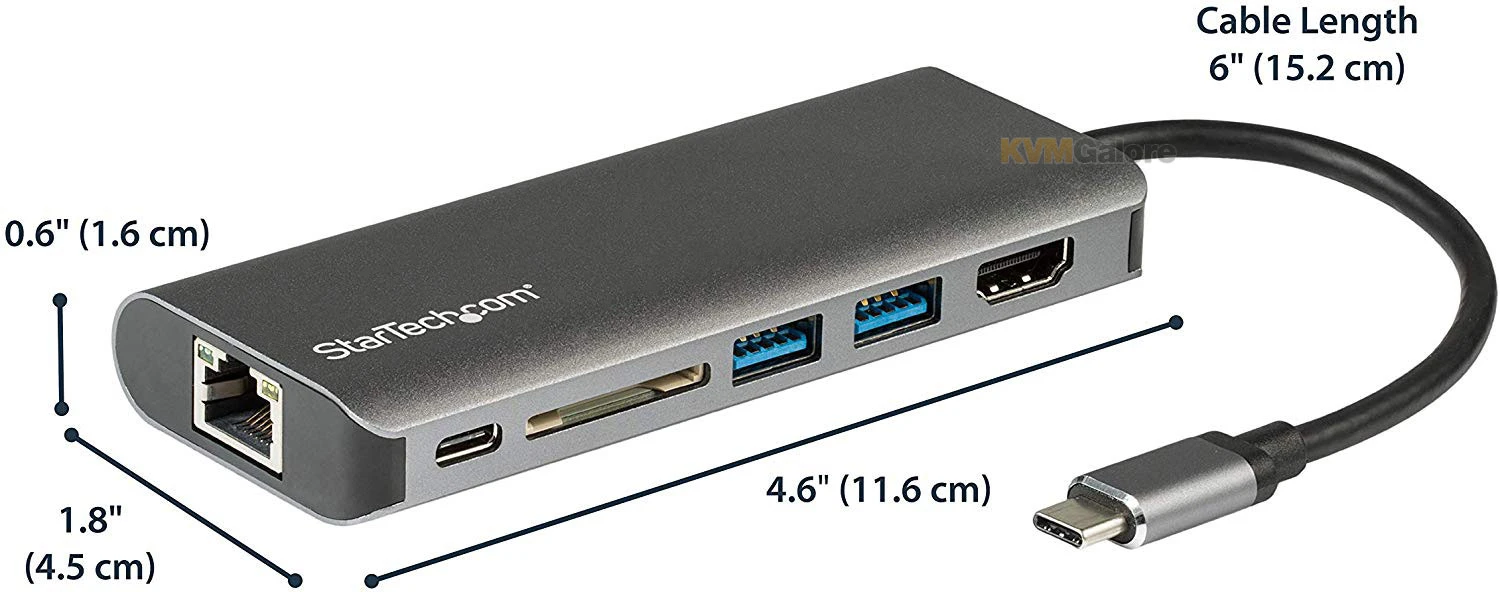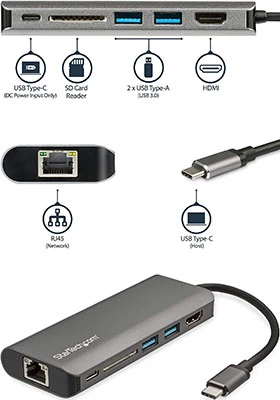 This USB-C multiport adapter with HDMI® turns your MacBook Pro, Dell XPS, or other USB-C™ laptop into a workstation, anywhere you go. The USB Type-C multiport adapter provides 4K HDMI video output, a USB Type-C port (data/power), two USB 3.0 Type-A ports, a Gigabit Ethernet port and an SD card reader slot, all through one connection to your laptop’s USB-C or Thunderbolt 3™ port. Plus, it offers advanced charging through USB Power Delivery 3.0.