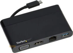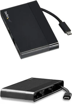 Ideal for mobile workers, this USB-C multiport adapter with HDMI and VGA gives you flexible video output. It’s like four adapters in one, with HDMI or VGA connections, a Gigabit Ethernet port and a USB 3.0 port, all through one connection to your laptop’s USB-C port. Plus, it features a hideaway cable for better cable management and easier travel.