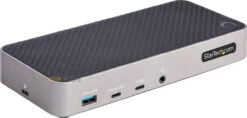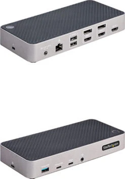 This triple-4K docking station uses a combination of its integrated DisplayLink® graphics controller and your computer’s DisplayPort Alt Mode enabled USB Type-C port to provide three independent 4K displays.